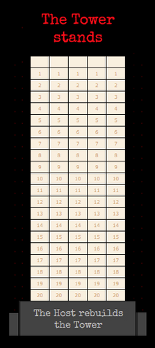 This was the first of my pandemic era forays into turning Google's shared spreadsheet program into a game. This one takes a tried and true, d20 based replacement for the Jenga tower used in games of Dread, and jazzes it up with what some people might mistake for dramatic tension.
